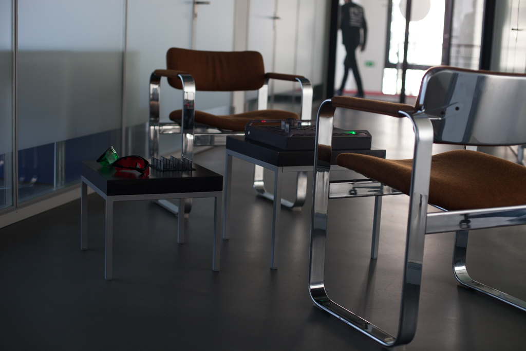 - Installation (Précisions) : Hollow plinth (80cm x 150cm x 60cm) with a hole on top plane, MacBook Pro (Retina, 15-inch, Late 2012) and power supply, Logitech Boom 2 Bluetooth speaker, External Microphone with mini jack, Arduino Uno R3, Water level sensor, USB-A cable, Red solid core wire, Black metallic base with candle holder, Transparent teapot with black flat punched top, Transparent teacup, Ice cubes, Red candle, Teabag (9cm x 4cm), Cactus, White candles, White plate with local treats and snacks (preferably beige)