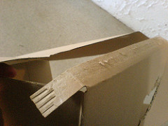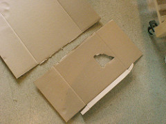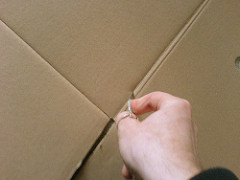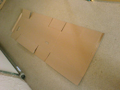 Flatten the cardboard box by identifying the natural seam where the box was glued together and tear at this point. This should give you a flat piece of cardboard to work with.
