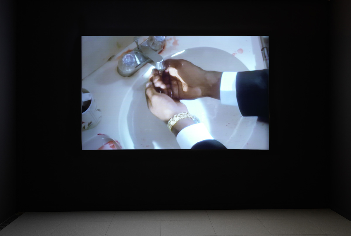 Face à une œuvre comme « Dérives » d'Émilie Brout et Maxime Marion, on aura le droit de se sentir un peu submergé. 2. 000 séquences d'eau, tirées toutes de la mémoire cinématographique, sont montées les unes après les autres par une machine qui en génère sans fin un film : un seul, un film infini. Ce film aura comme personnage principal l'image de l'eau. À part une éventuelle coupure de courant, le film ne s'arrête jamais, préférant plutôt ralentir — voire stagner —, avec des images d'étangs, de flaques, ou de verres d'eau, avant de reprendre à travers des larmes ou de la bruine qui mèneront inévitablement à des averses suivi de tempêtes, d'attaques de requins et de tsunamis, puis se ralentit de nouveau dans un petit ruisseau d'images calmes avant de repartir encore pour un tour. C'est un flux permanent, incessant, qui monte et descend et remonte de nouveau ; un film sans fin qui est toujours le même — un film sur l'eau — qui ne pourrait jamais être le même : un film-fluide sortie tout droit des fragments d'Héraclite.