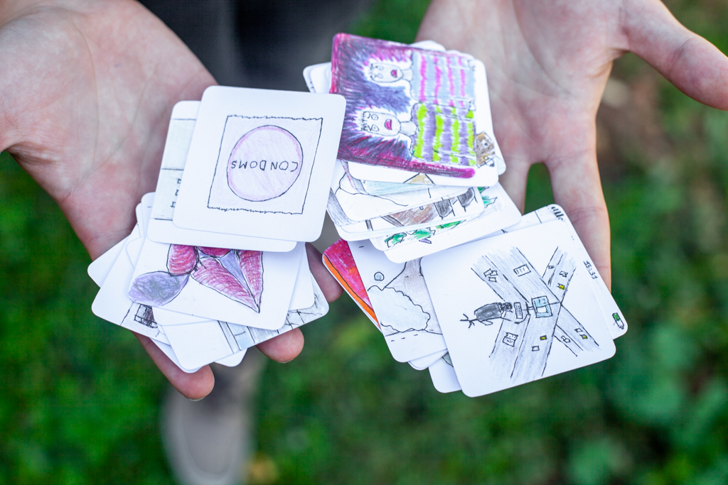 We used playing cards as a starter method, inspired by the Crash Cards methodology developped for ENIAROF, and then worked from there to develop our own cards and/or methdologies, depending on the project. You can see the actual cards drawn over at the Crash Cards interface.