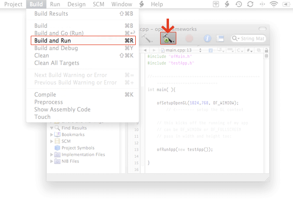 Si vous êtes dans XCode (mac*, aller dans le menu Build et sélectionnez Build and Run. Notez que vous pouvez aussi appuyer sur les touches Cmd-R (vous allez rapidement mémoriser cette combinaison). Vous pouvez également appuyez sur l'icône du marteau accompagné d'un triangle de lecture verte pour finir avec le même résultat.