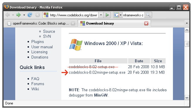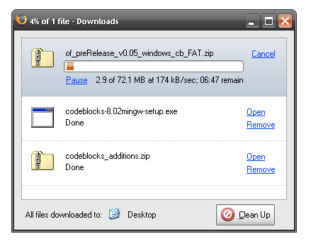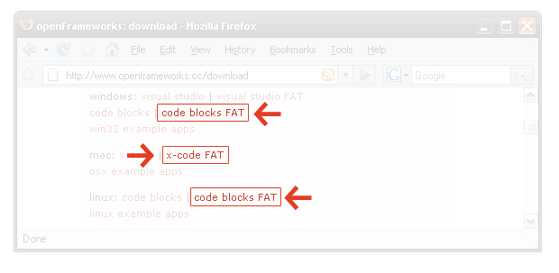 downloadd'OpenFrameworks: et téléchargez le fichiercode blocks FATpour Windows.