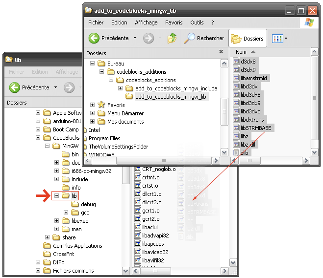 codeblocks addons, et sélectionnez tous les fichiers dans le sous-dossier nomméadd_to_codeblocks_mingw_libsque vous aller copiez dans le dossierProgram files > Code Blocks > minGW > libs