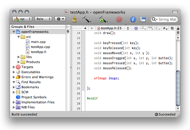 Ajouter au header testApp.h de votre projet une déclaration d'une variable de type ofimage qui contiendra votre image :