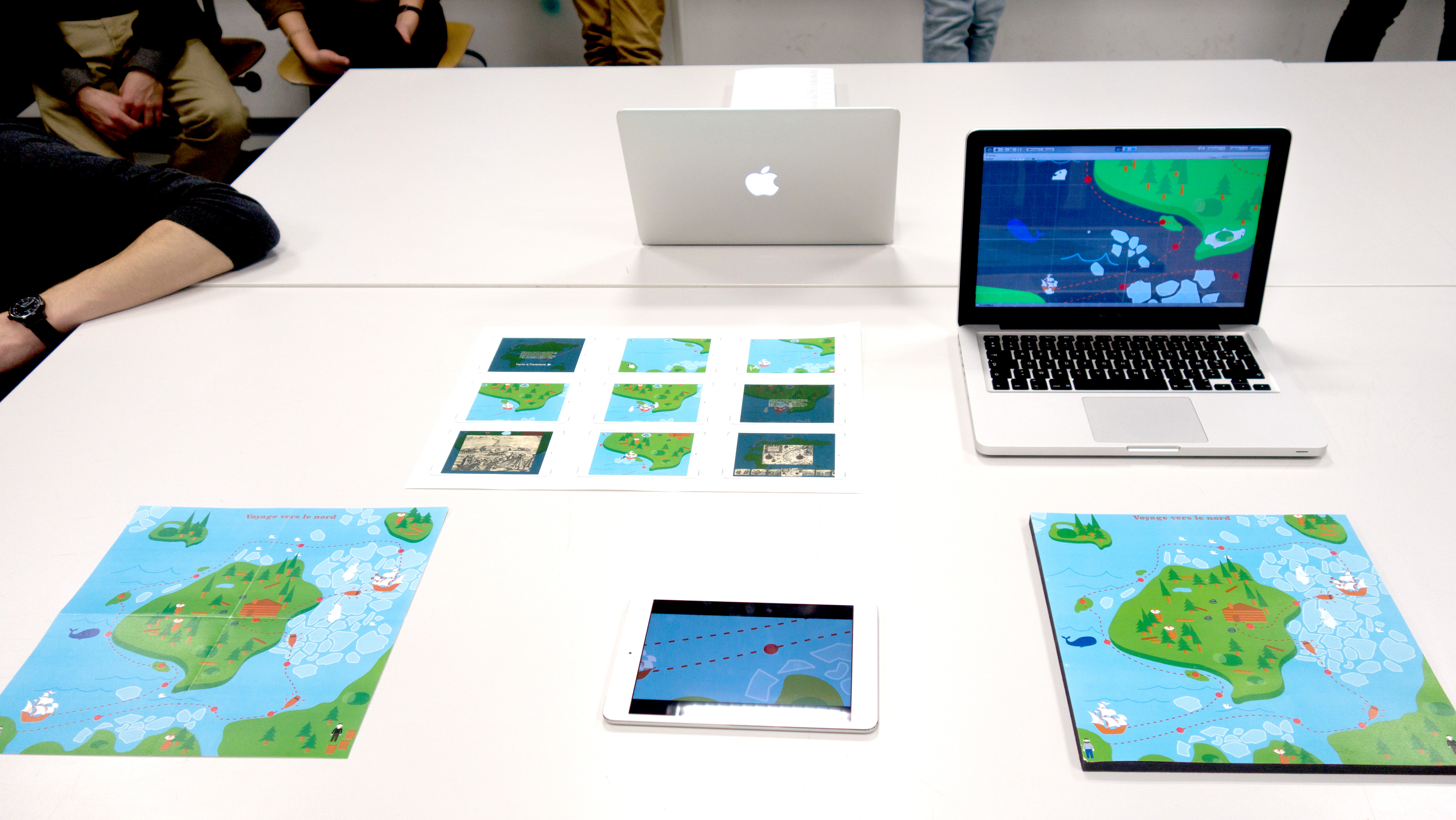 Avec notre application, nous avons créé un complément d’histoire, qui n’est pas un jeu, où le récit de l’équipage est raconté avec des animations et des résumés de texte. Nous nous sommes basées sur les 13 gravures de Théodore de Bry et en avons fait des étapes de récit, du départ d’Amsterdam jusqu’au retour.
