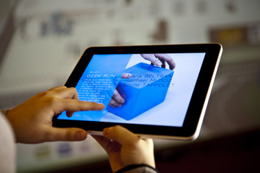 The CITY MEDIA project, initiated in 2009, is the result of a collective effort bringing together developers, artists, and cultural practitioners, united by a shared desire to rethink the role of media in the urban environment and to make its use more immersive, more human, and more sensitive. The project takes the form of a large interactive touch screen that also incorporates a motion-capture system, which can be activated by several people simultaneously, acting either collaboratively or independently. Conceived as a genuinely open innovation platform, City Media brings together around twenty applications developed by students from art schools — serving as a presentation framework for the works produced during the workshop led by Douglas Edric Stanley at the Mapping Festival.