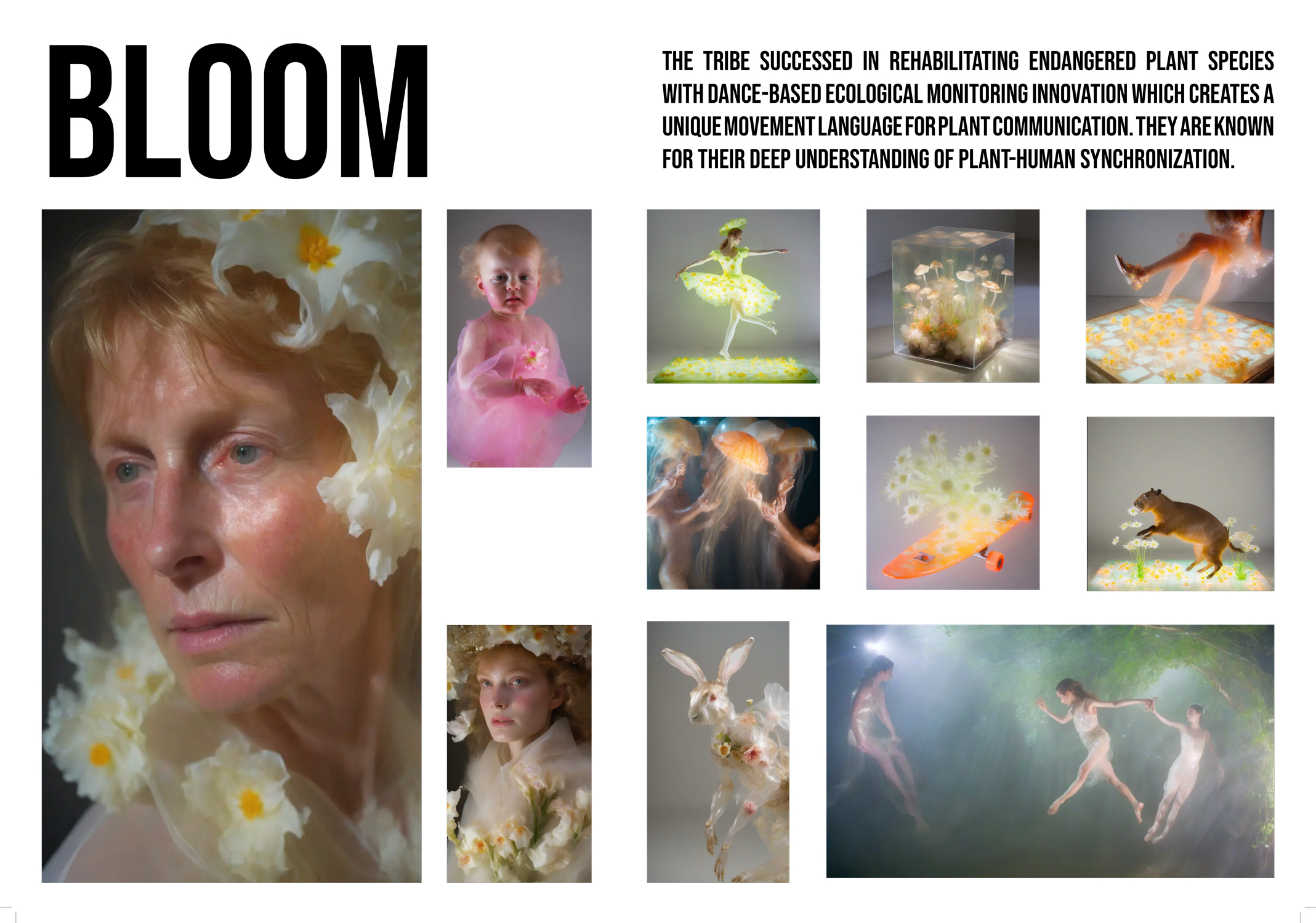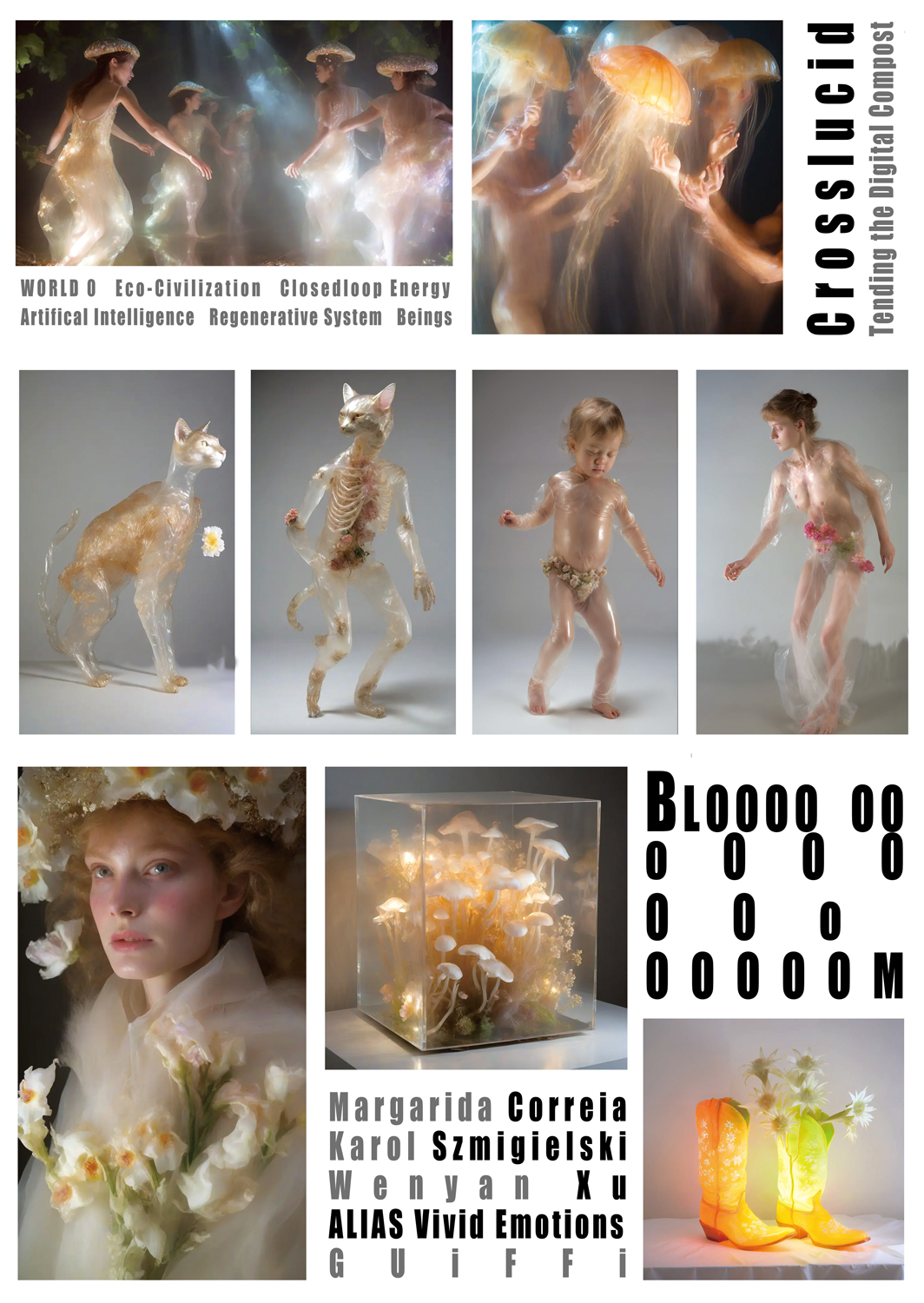Images, texts, and fragments were combined, diverted, remixed — in a shared gesture of sensuous making. This collective work brought forth an ambiguous artifact: at the boundary between the organic and the synthetic, shifting traces of a dialogue between humanity, machine, and fiction.