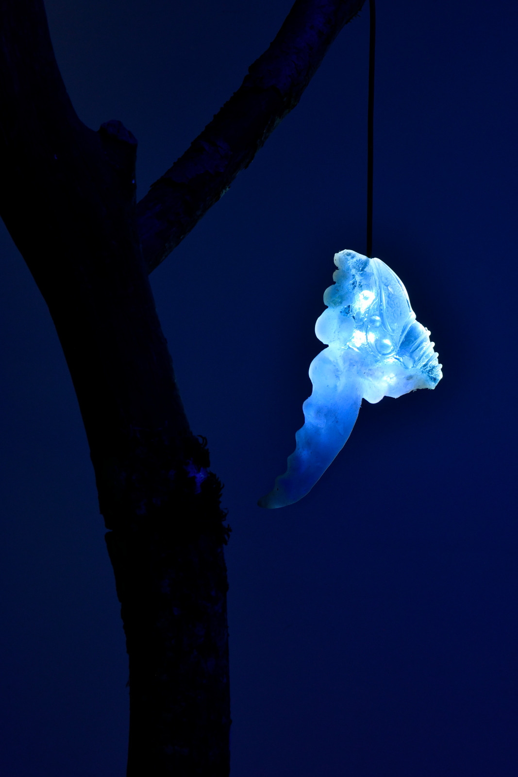 Bismuthocris Chrysallis and Coleoptera Terbiumidae, embodied here as sculptures, populate a fictional biotope where the laws of adaptation are replayed. Their hybrid, translucent bodies and synthetic textures evoke a nature that does not disappear, but reconfigures itself. No longer opposed to technology, it merges with it in a new form of existence — strange, speculative, resilient — where artificiality may become a second nature.