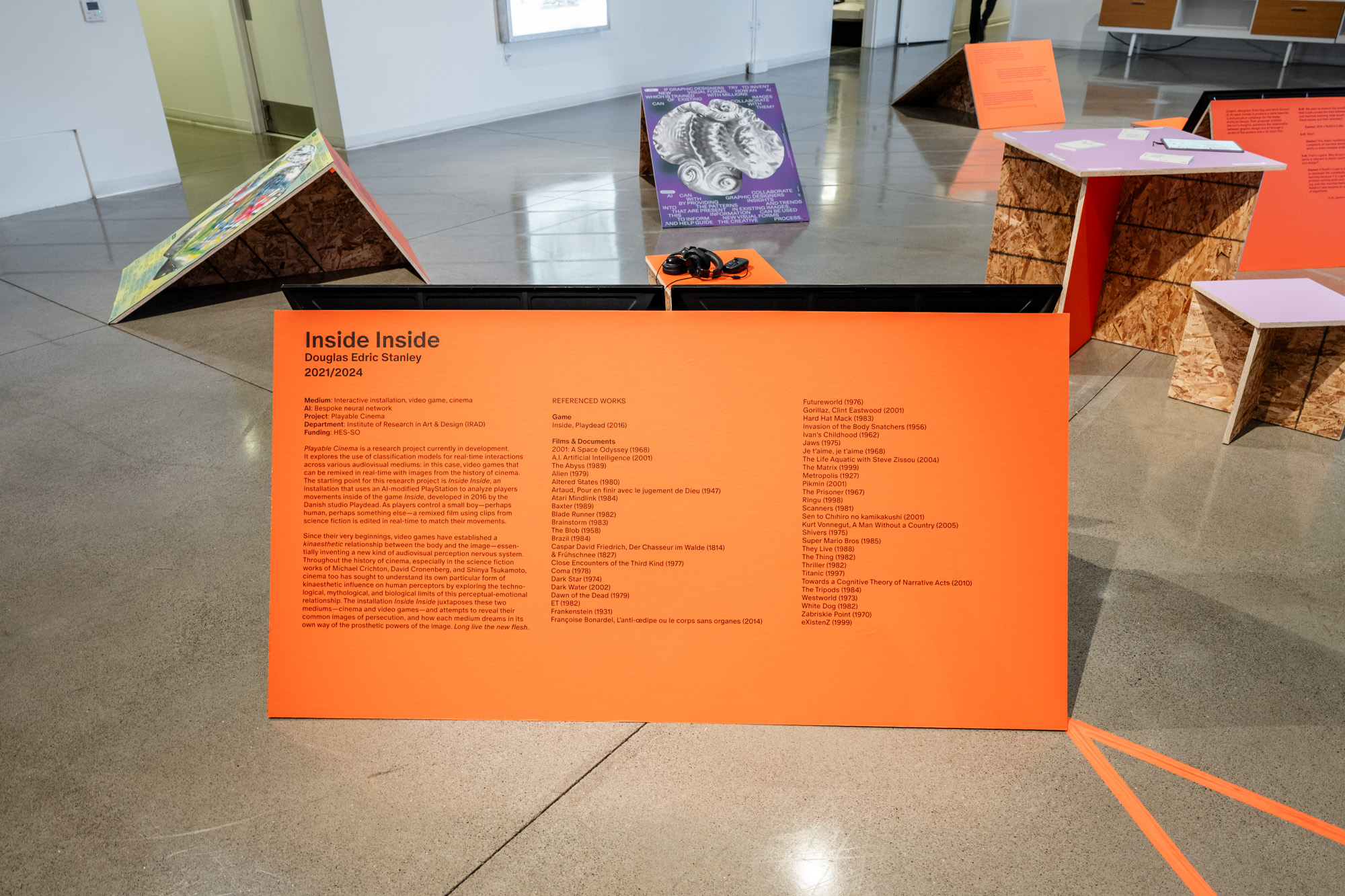 Playable Cinema is a research project currently in development. It explores the use of classification models for real-time interactions across various audiovisual mediums: in this case, video games that can be remixed in real-time with images from the history of cinema. The starting point for this research project is Inside Inside, an installation that uses an AI-modified PlayStation to analyze players’ movements inside of the game Inside, developed in 2016 by the Danish studio Playdead. As players control a small boy — perhaps human, perhaps something else — a remixed film using clips from science fiction is edited in real-time to match their movements.