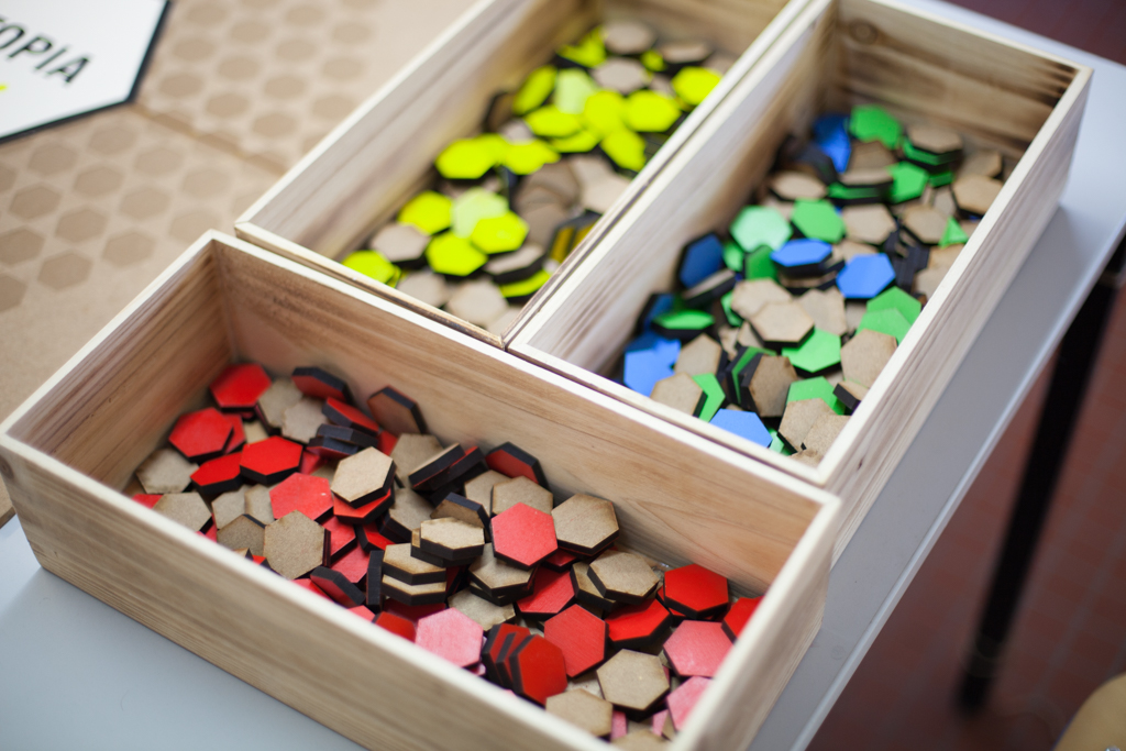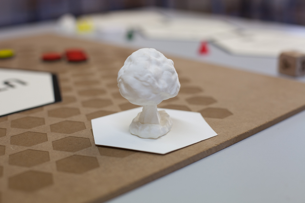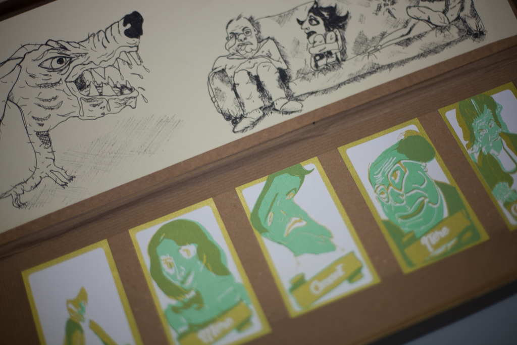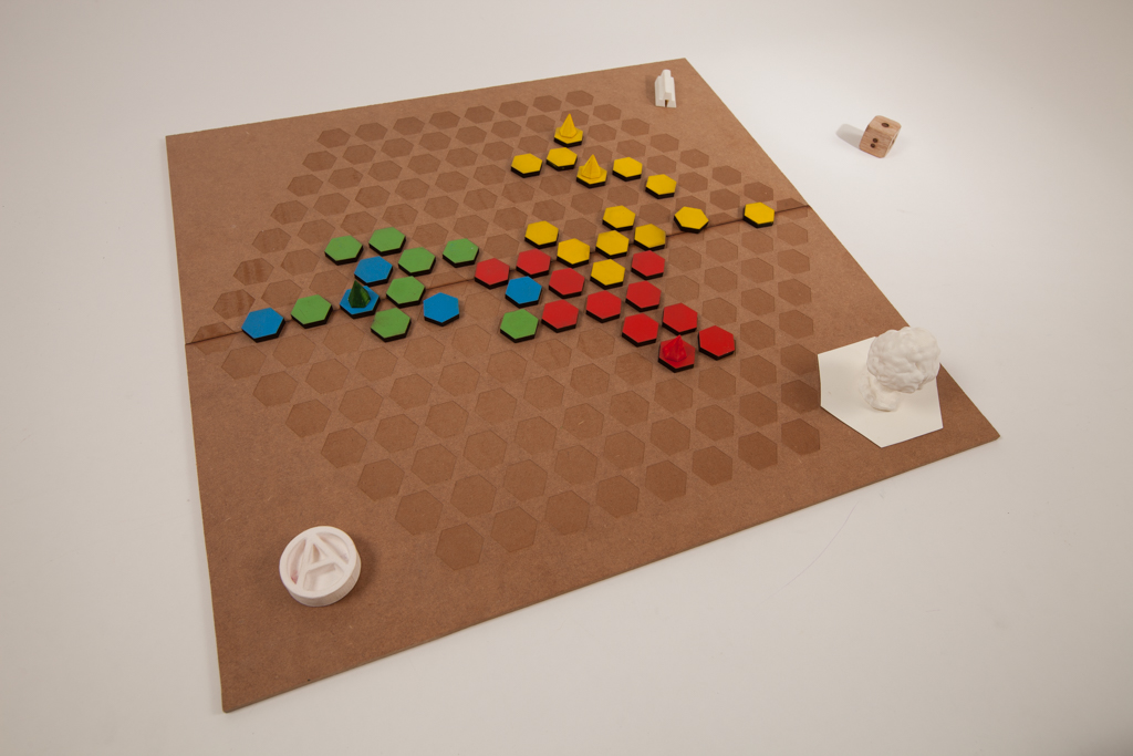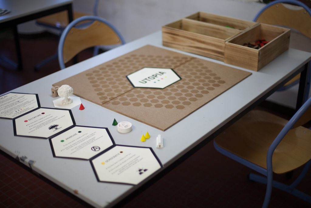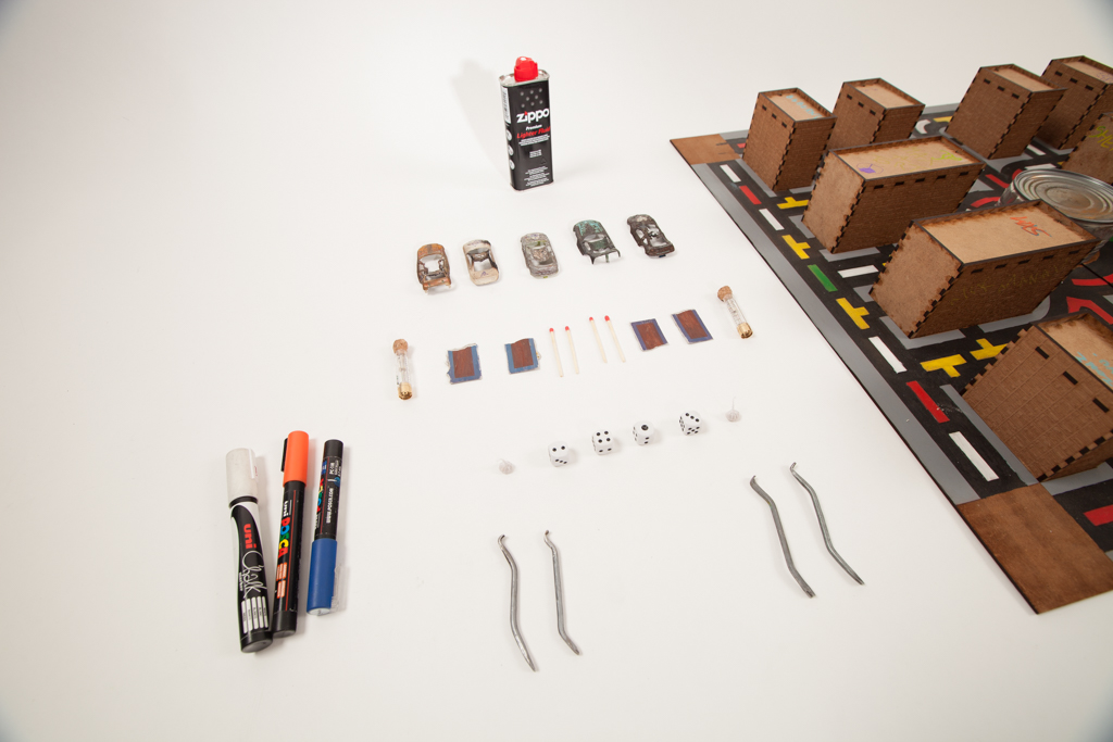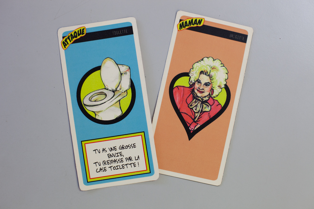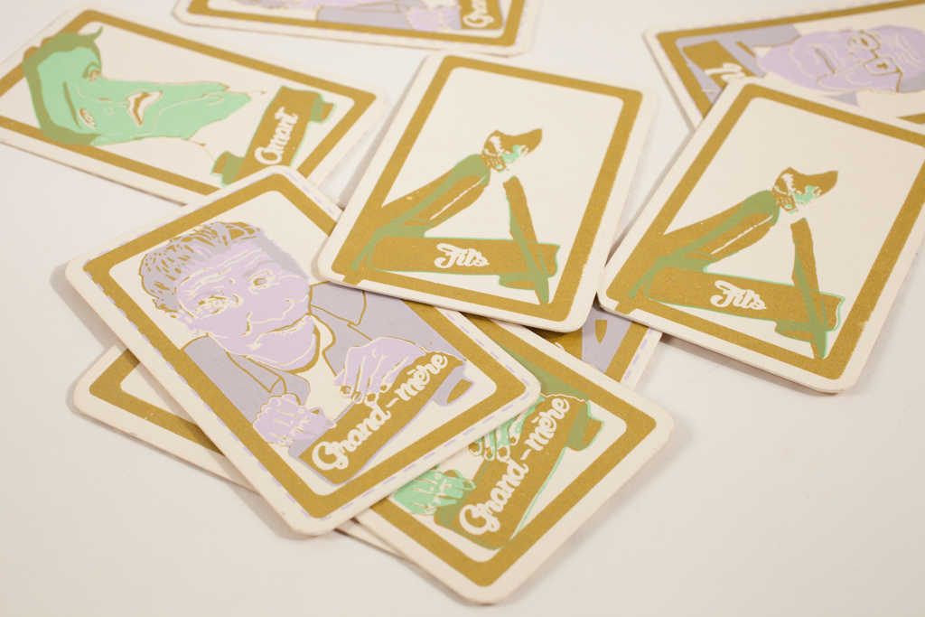 Jeux sérigraphiques présente des jeux développés par les étudiants en 2ème année pendant un cours de six jours organisé conjointement par l’Atelier Sérigraphie et l’Atelier Hypermédia. L’objectif du cours était de mélanger divers techniques et matériaux (papier, encre, bois, métal, ordinateur, tablette, sérigraphie, découpe laser, programmation) pour créer des jeux dont les catégories ont été entièrement crées par les étudiants eux-mêmes : jeux de cartes, jeux de plateau, jeu de doigts, jeu de combat, jeux littéraires, ...
