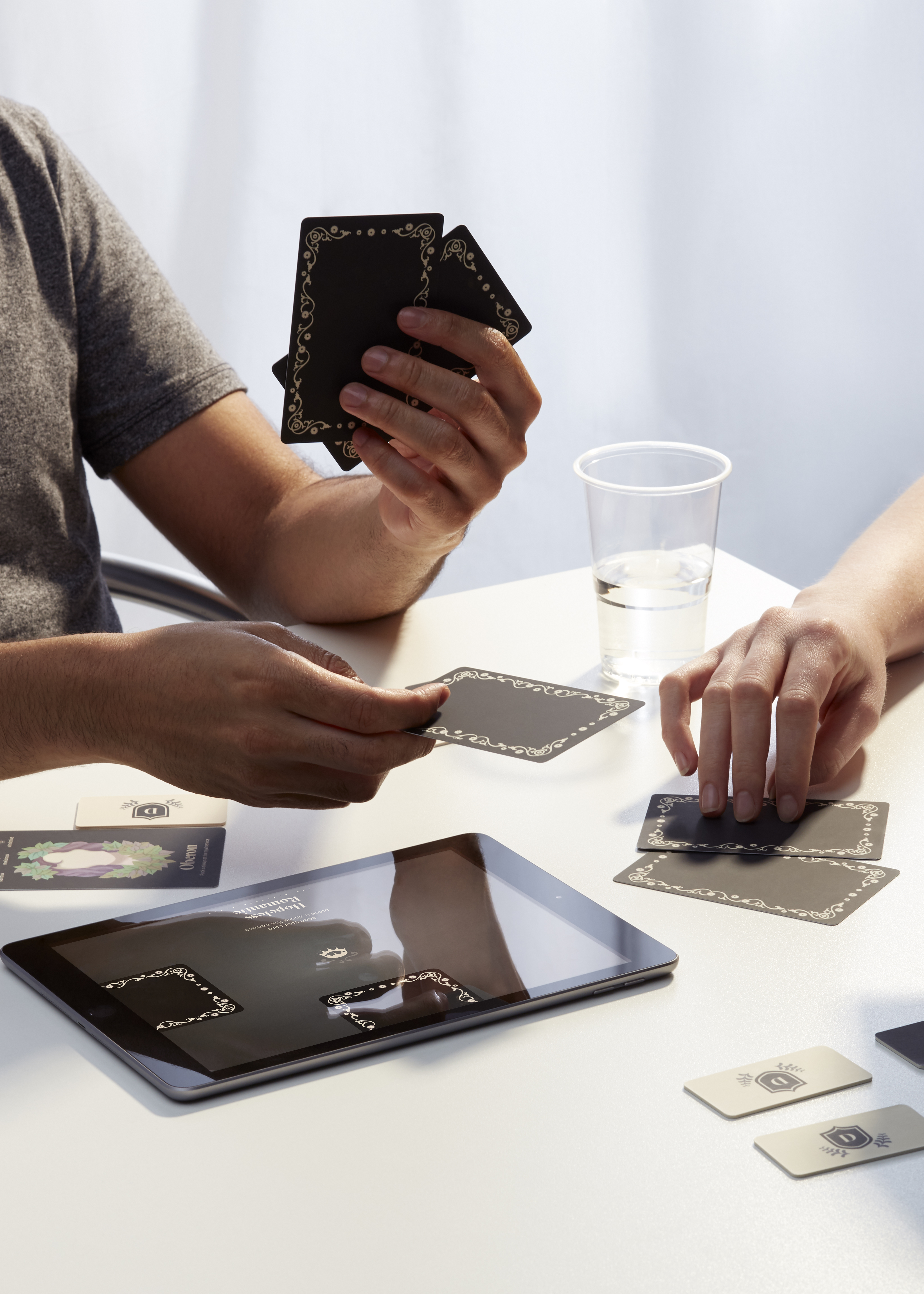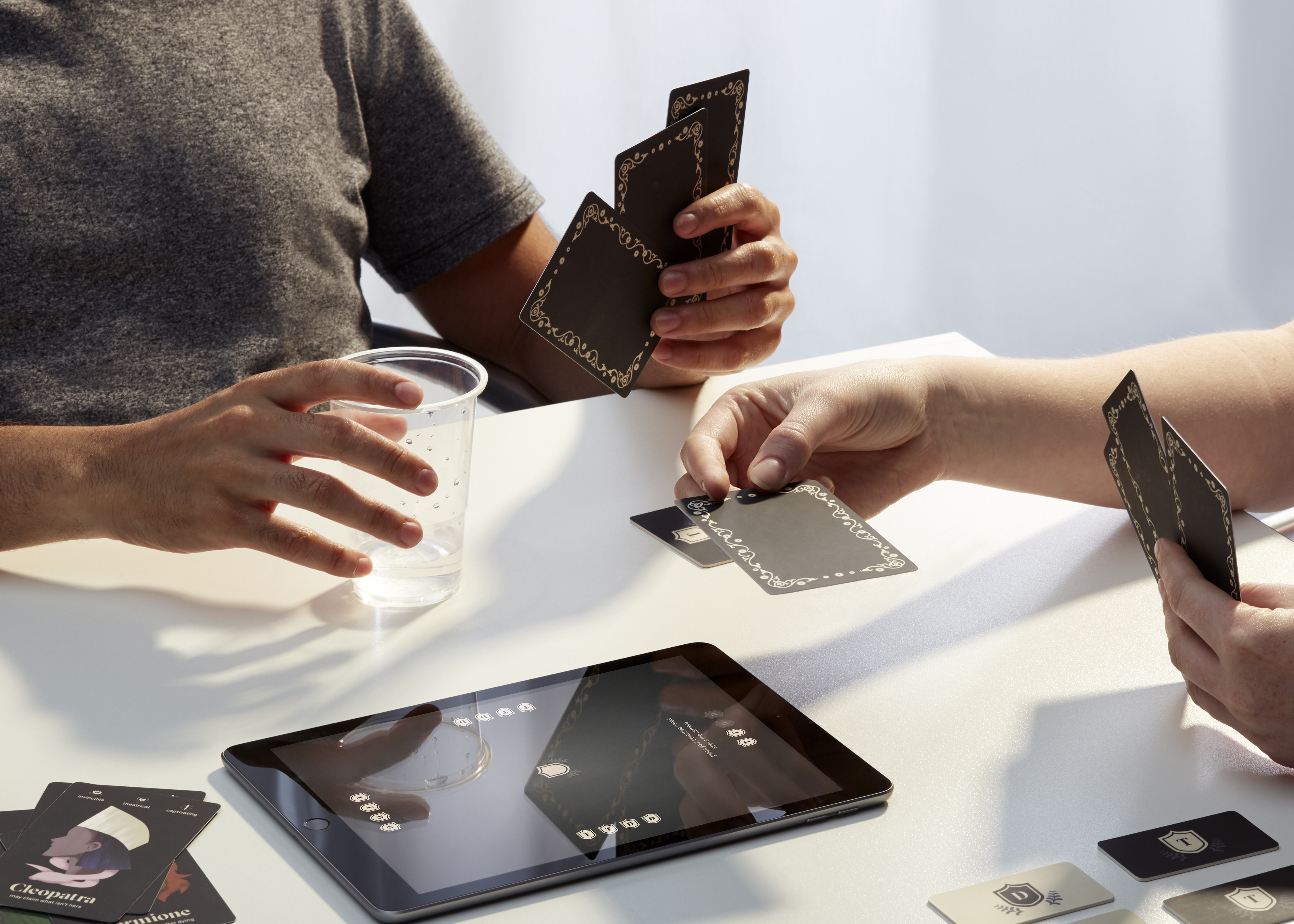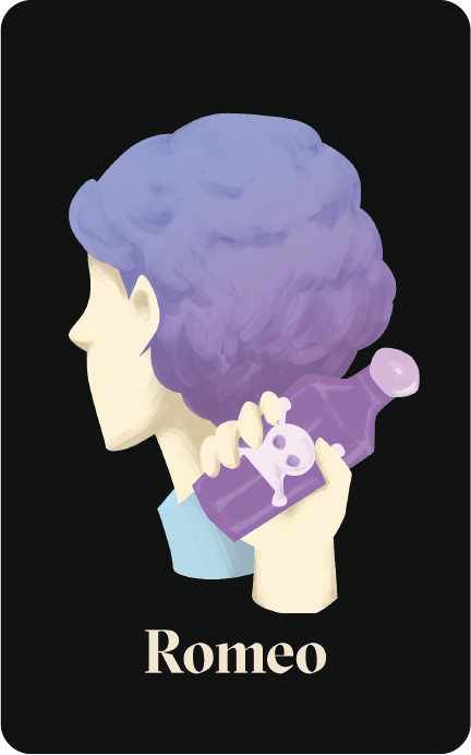 A hybrid strategy game using the characters of Shakespeare as they fight for love, power, and glory. Players select their best characters from The Bard as they complete a series of open and secret objectives. A central tablet watches over the interactions of these heroes, royalties and lovers as each encounter unfolds into new tragedies narrated by the tablet.