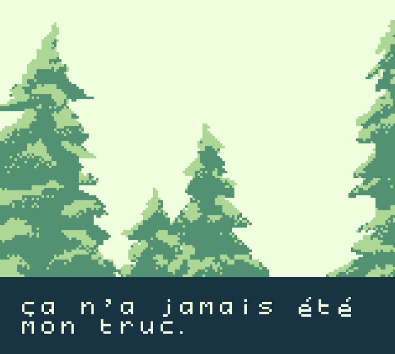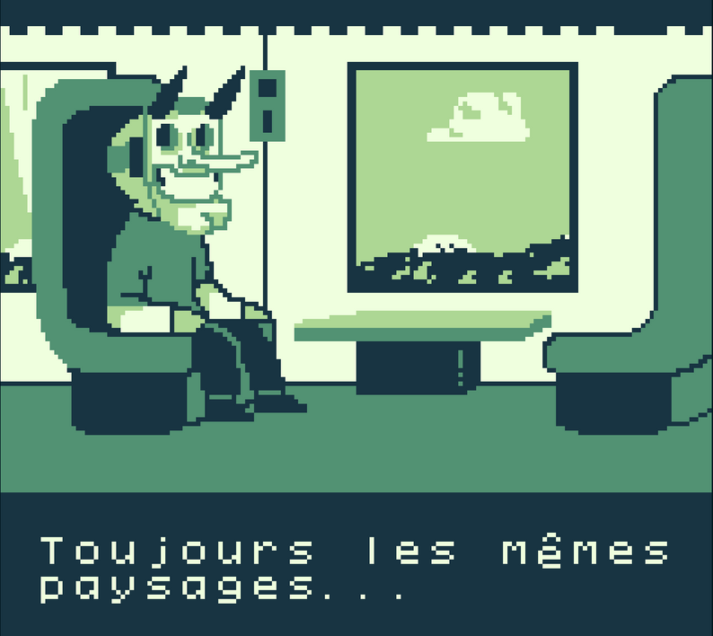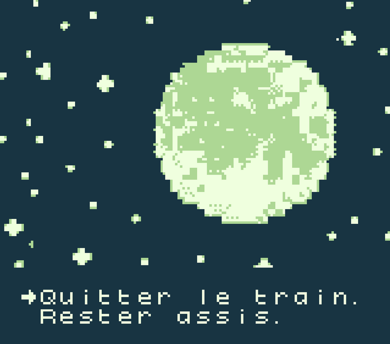In this introspective story for GameBoy, the player is immersed in the thoughts of a protagonist during a train journey. Through the landscapes, memories are brought back to life and a dialogue with oneself is established.