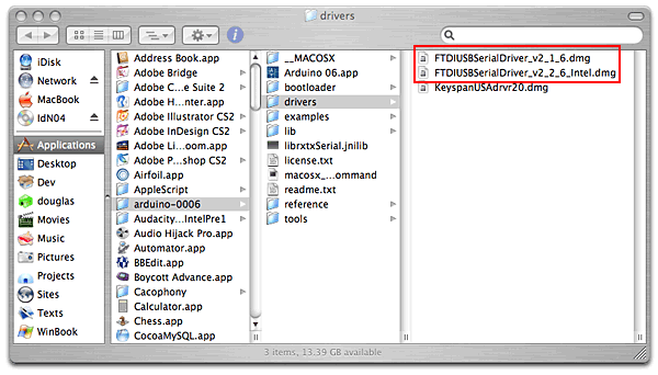 Cliquer sur l'icône FTDI selon votre machine Intel ou PPC et suivez les instructions. Si vous êtes sur Windows ou Linux, vous pouvez suivre les instructions adéquates en cliquant sur le bon lien sur la page d'Installation Guide :