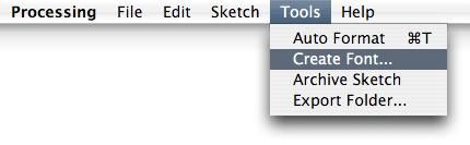 Comme pour l'importation des images, Processing vous aide dans l'importation des polices. Il suffit de choisir dans le menu Tools > Create Font